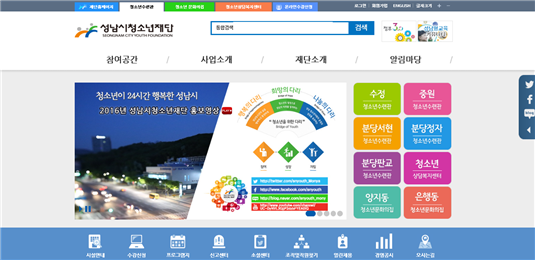 ▲ 성남시청소년재단 홈페이지