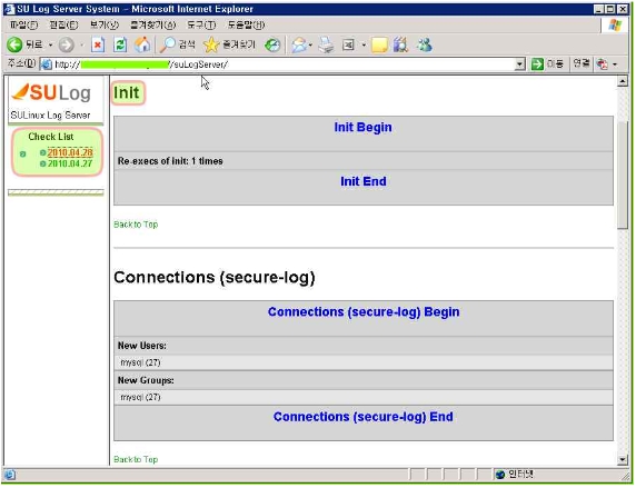 위 결과는 로그서버가 분석한 로그결과를 확인한 스크린샷입니다. 위와 같이 웹브라우저를 통하여 접속하여 확인 할 수 있습니다.